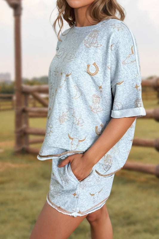 fashionworks - Fashion-W Western Fashion T Shirt Elastic Waist Shorts Set