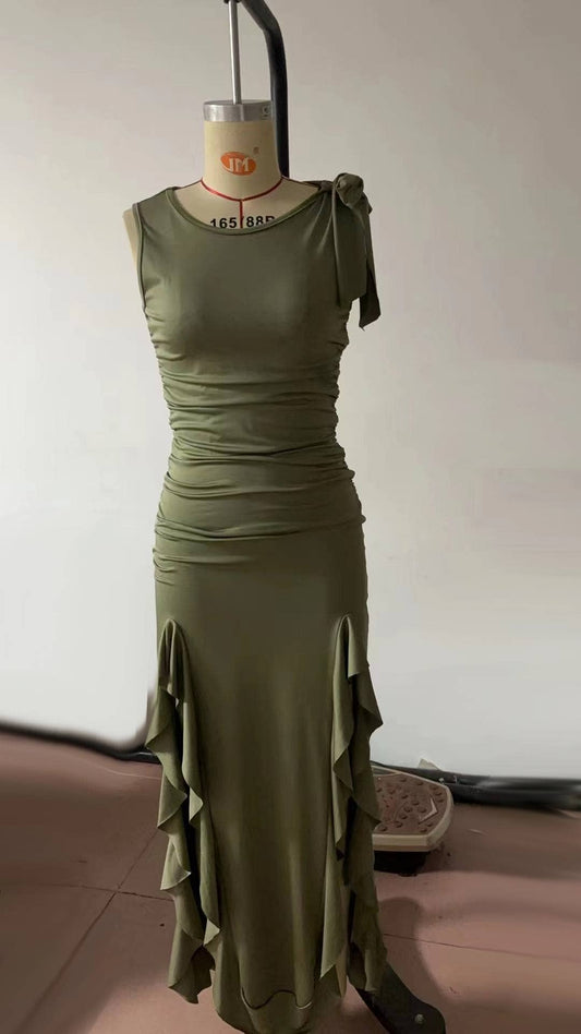 Rosa Clothing - Western Cowgirl Coachella Ruffled Slit Dress