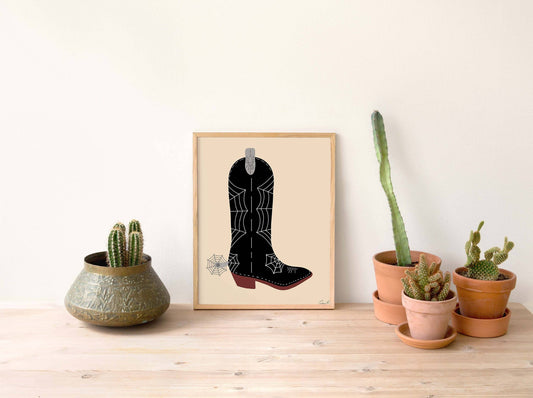 Halloween Spider Web Cowgirl Boots Wall Art | Halloween Art