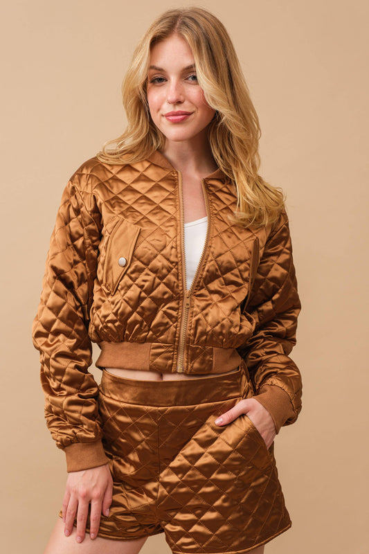 Blue B - 61234SET Quilted Crop Pocket Bomber Jacket w/ Matching Set