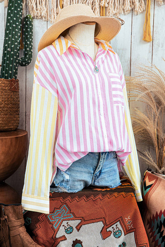 fashionworks - Fashion-W Stripe Collar Patchwork Long Sleeve Shirt