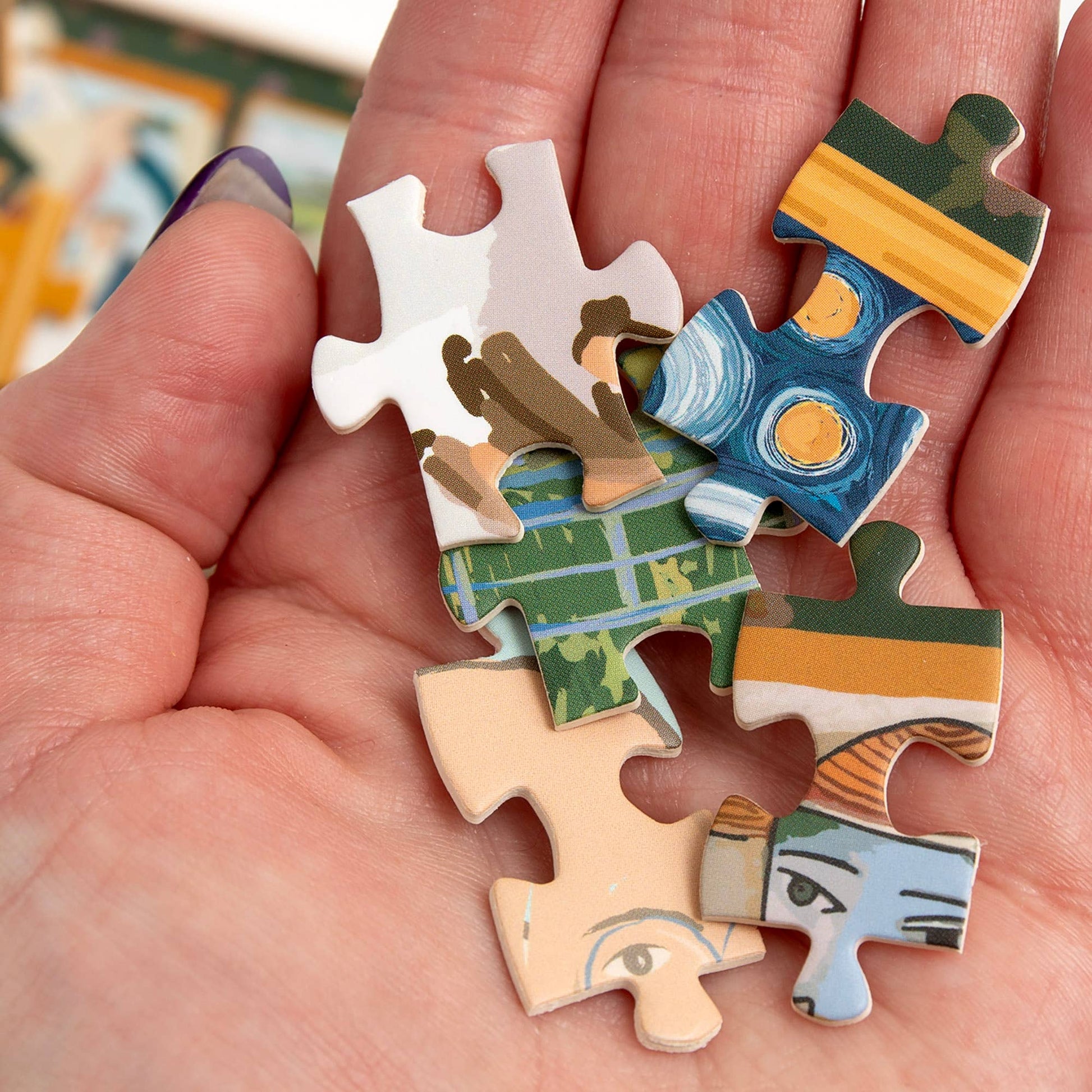 Unleash your inner art connoisseur with our Famous Works of Art 400 Piece Panoramic Jigsaw Puzzle. Featuring masterpieces from renowned artists, this puzzle is a perfect gift for those who appreciate the beauty of classic art. Ideal for those artist, teachers, adults and kids, everyone will love piecing together the Mona Lisa, American Gothic, The Starry Night, Girl with a Pearl Earring, Water Lilies, The Creation of Adam, and more!