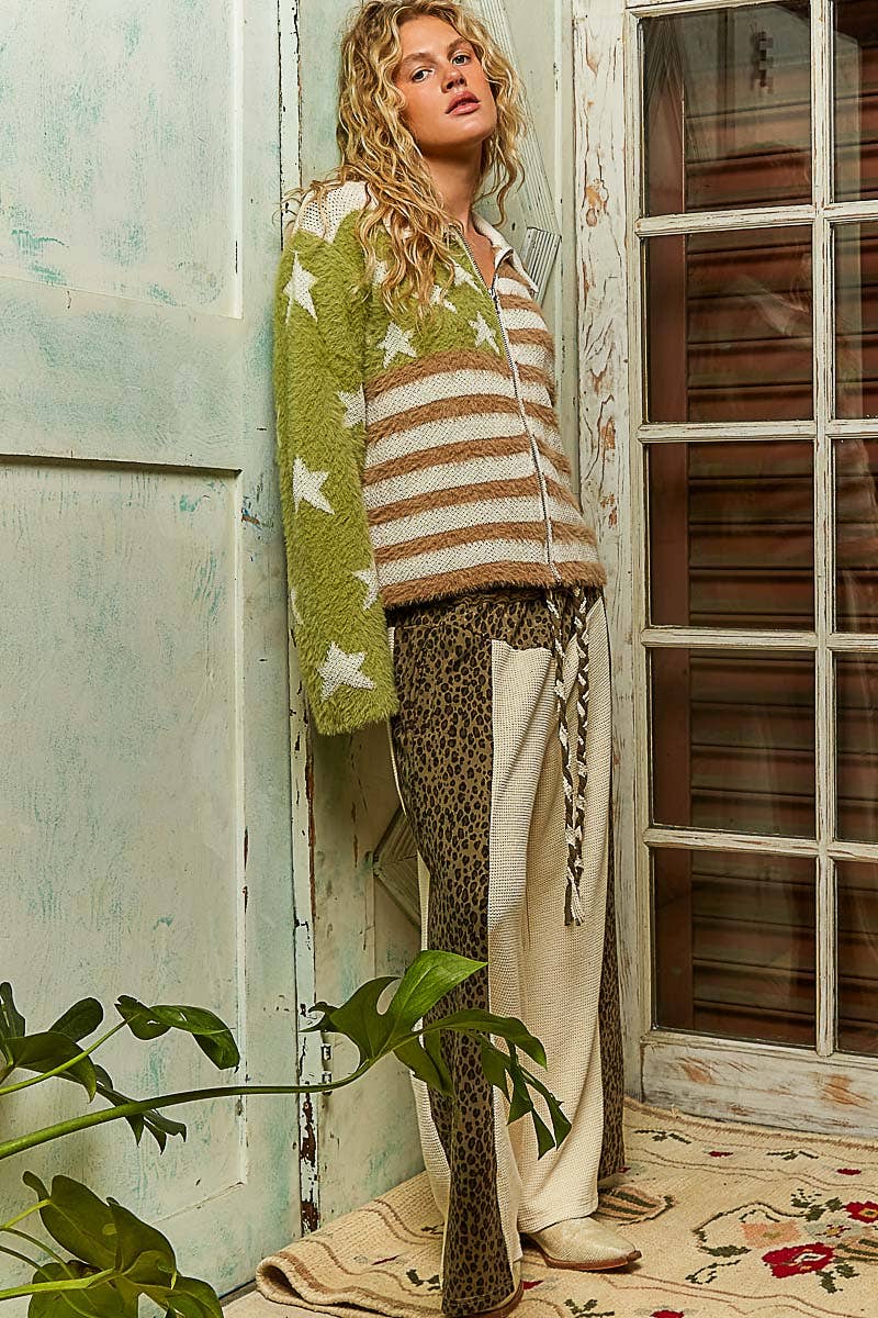 Pol Clothing - Collar neck long sleeve American flag mohair sweater jacket