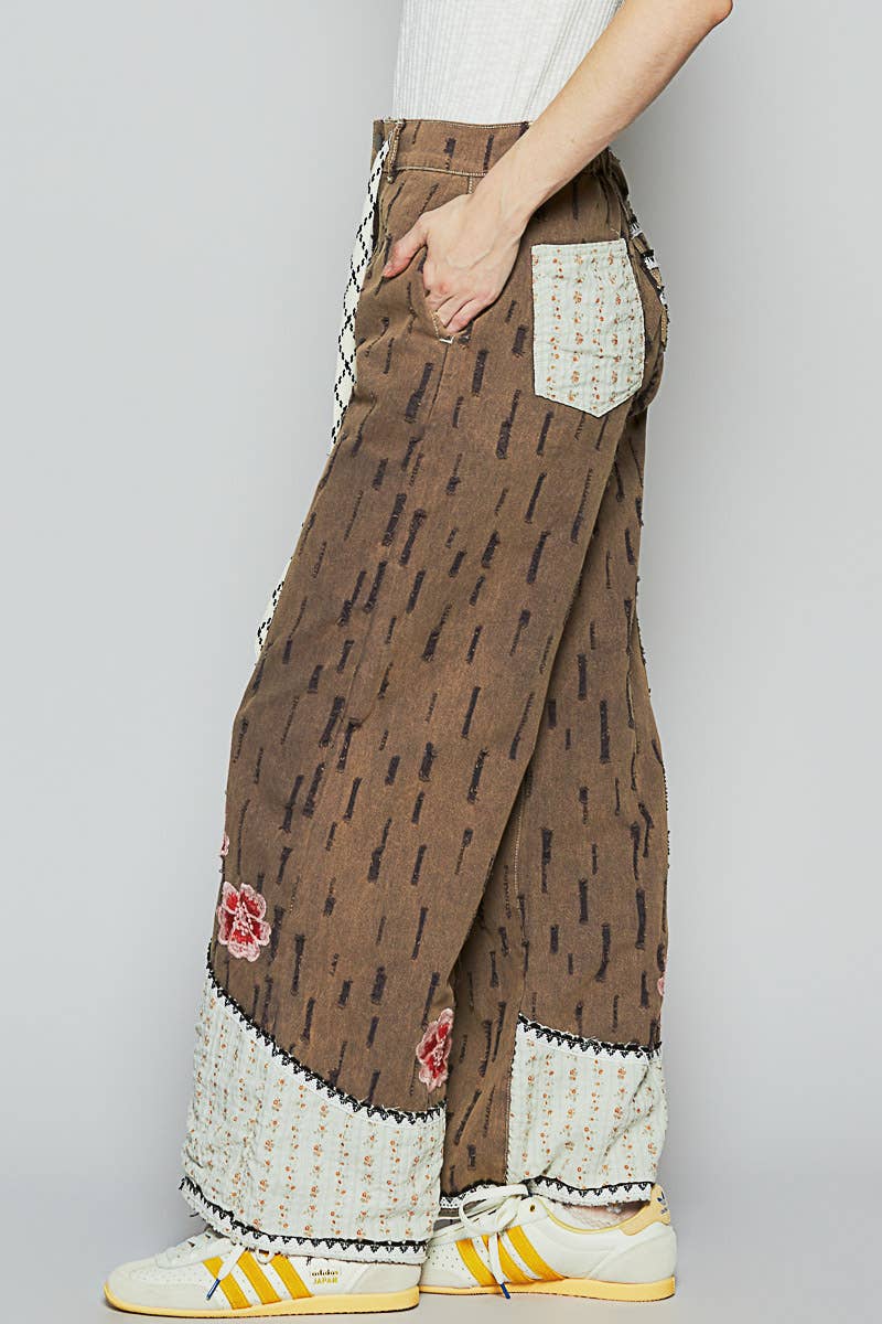 Pol Clothing - Floral patches embroidery elastic band casual pant