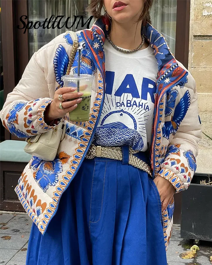 FASHION FLORAL POSITIONING PRINTS QUILTED JACKET_RCJW02736