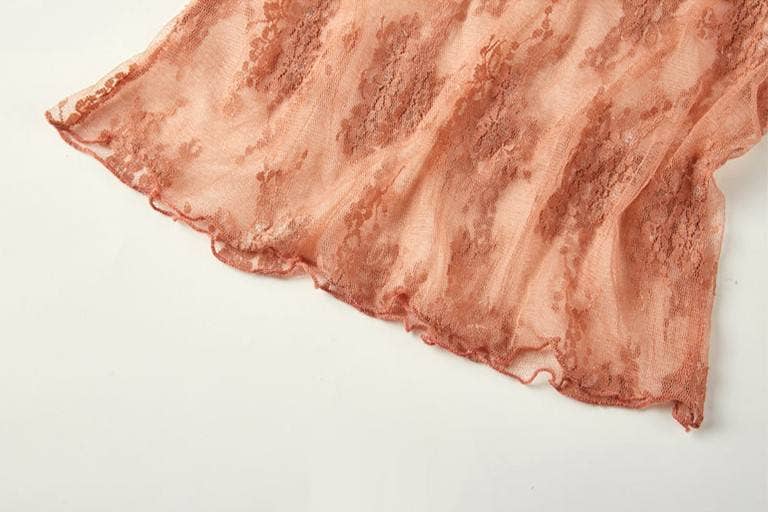 Rosa Clothing - Floral lace mesh see through short sleeve top - 6 colors