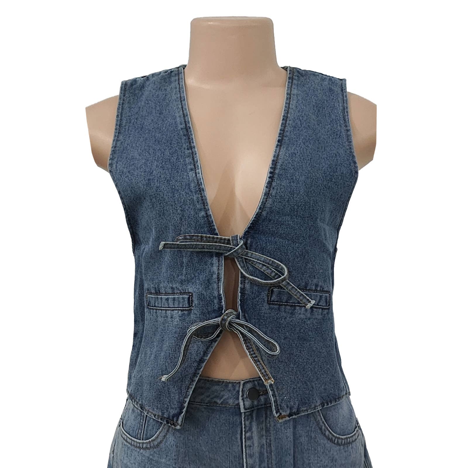 Rosa Clothing - Front bow tie v-neck Denim vest