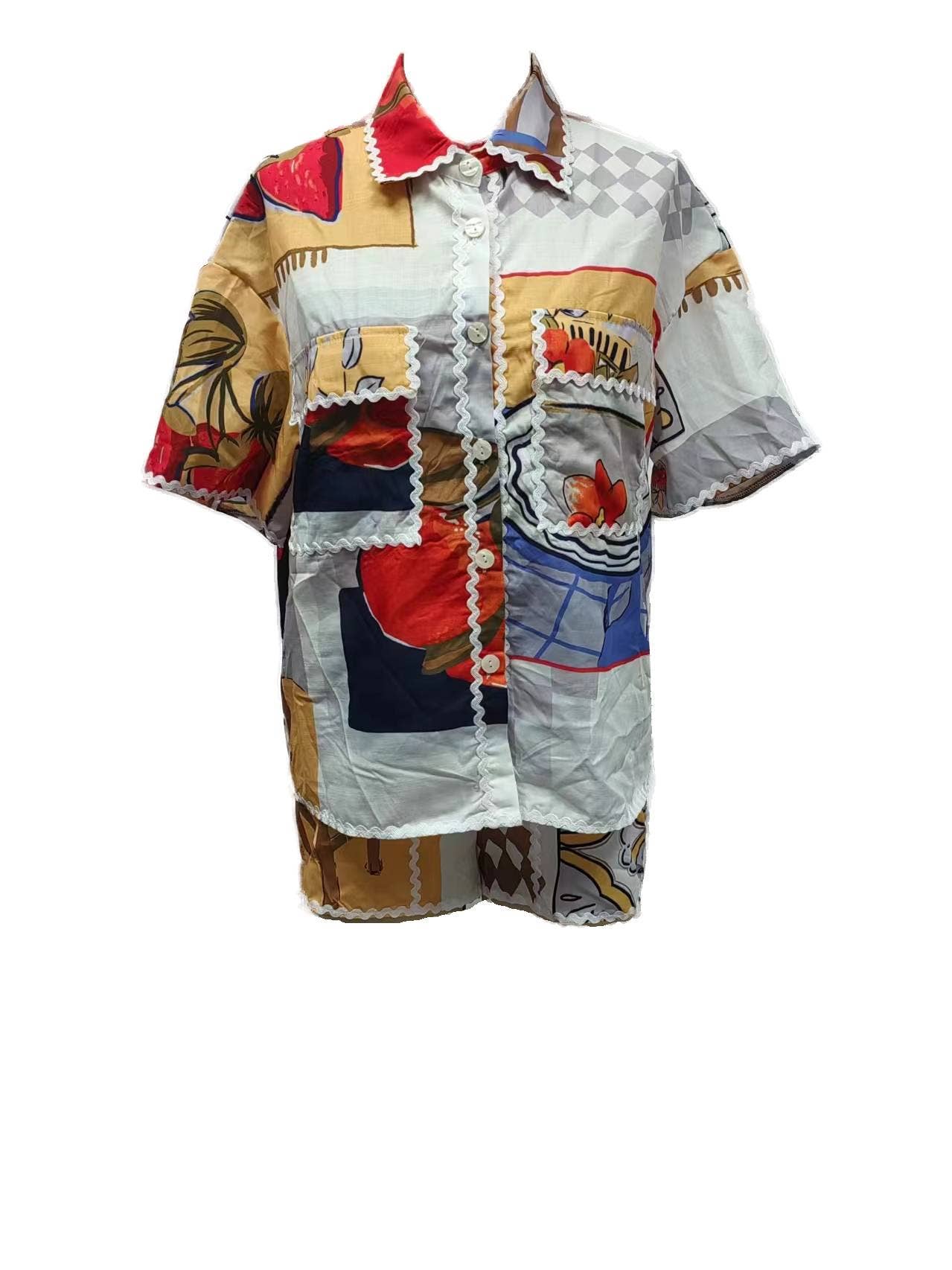 Rosa Clothing - Romantic Contrast Binding ric rac blouse short set