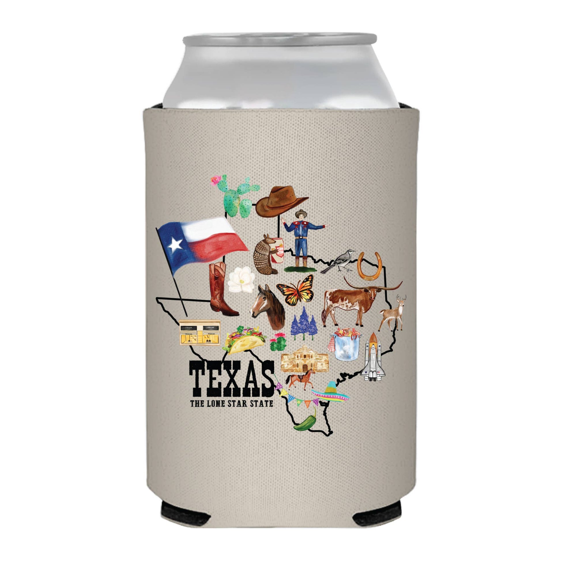 Our Texas The Lone Star State Full Color Can Coolers are a great addition to your home bar, perfect for a tailgate party, and make amazing gifts!